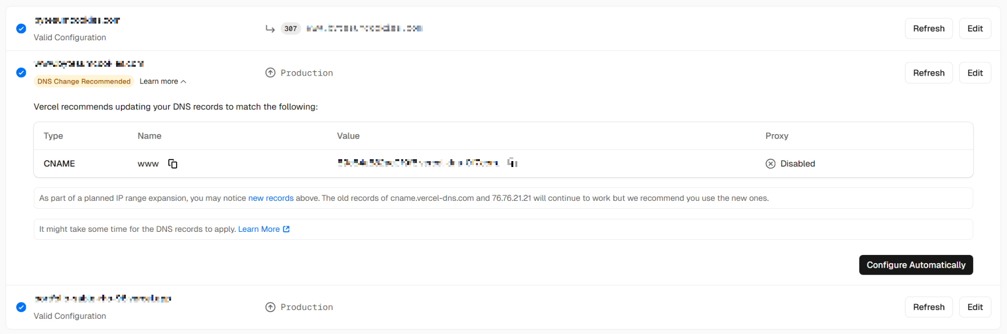 - DNS Change Recommended → Valid Configuration