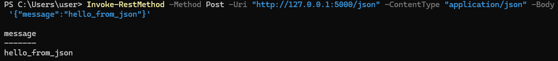 curl.exe -X POST "http://127.0.0.1:5000/json"